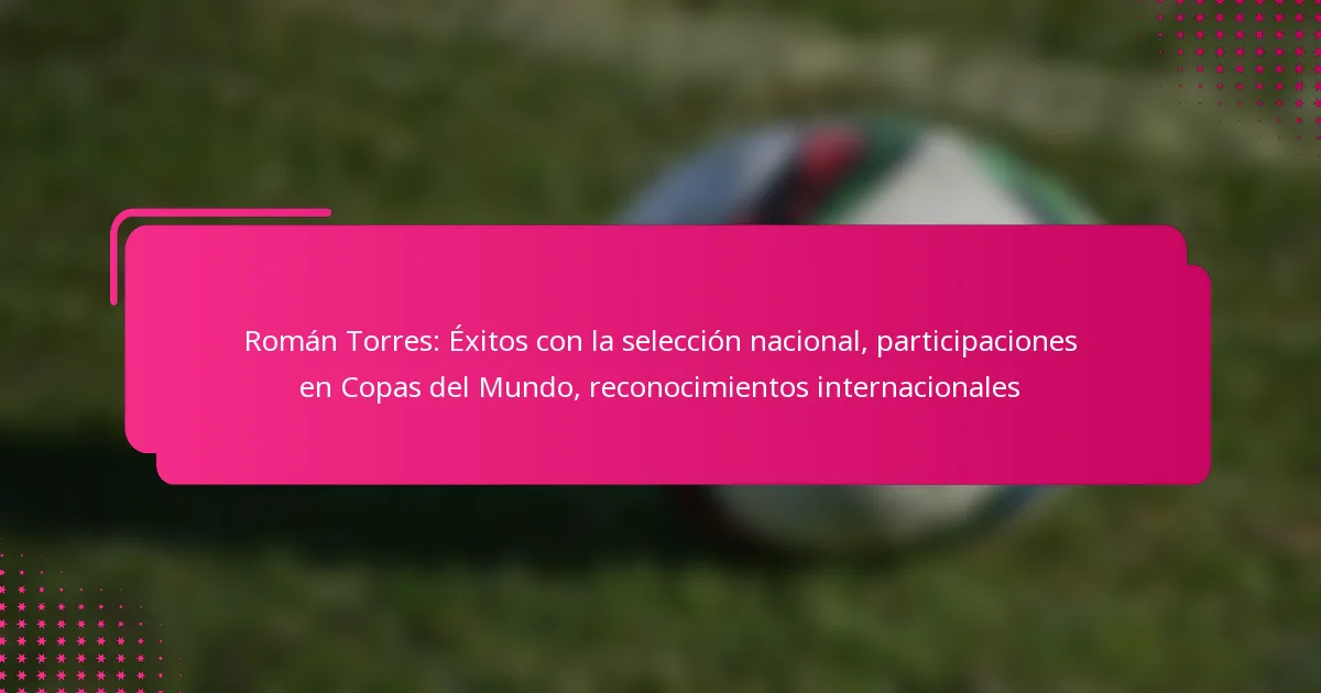 Román Torres ha obtenido importantes reconocimientos internacionales a lo largo de su carrera futbolística, particularmente con la selección nacional de Panamá. Sus contribuciones han sido fundamentales en torneos importantes, incluyendo la Copa Mundial de la FIFA y la Copa Oro de la CONCACAF, destacando su estatus como un jugador clave y líder.
